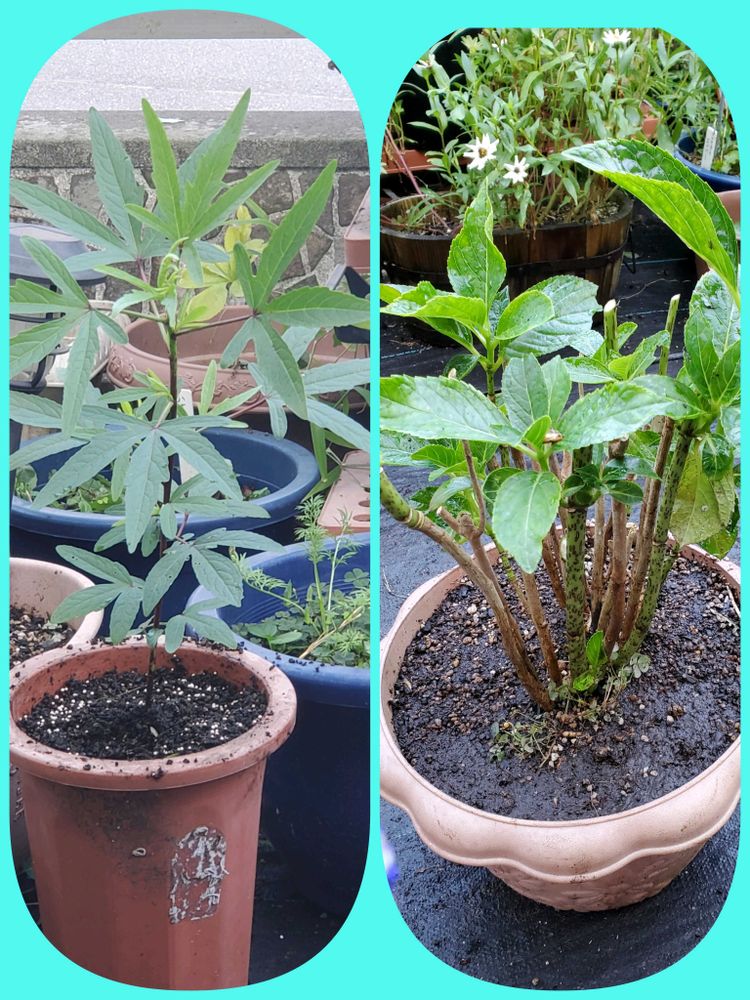 アジサイのダンスパーティの剪定をして、鉢を大きくしてみました、来年花を咲かせてくれるかが楽しみですが~🎶