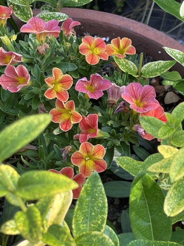 春に植えた時は、蕾がつけばナメクジに食われっぱなしだったのに、このガンガン照り続きになったらナメクジより強くなったみたい🤗夏に頼もしいカリブラコア様🧡