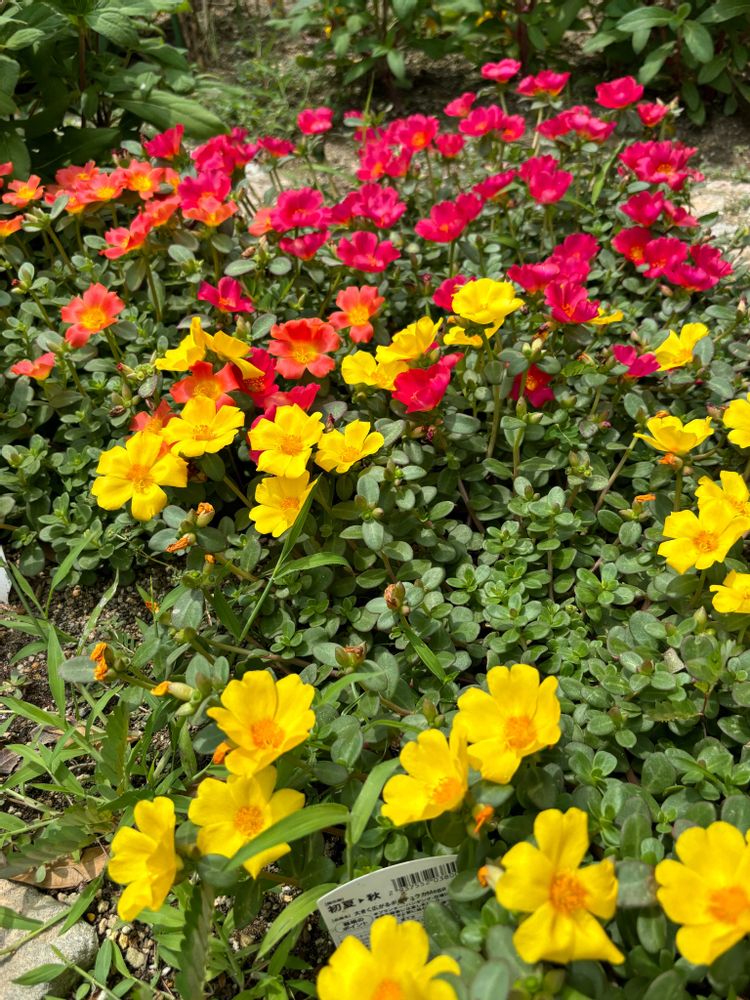 黄花ランタナ、色んな色合いのポーチュラカ💚元気もらえるよ٩(๑❛ᴗ❛๑)۶