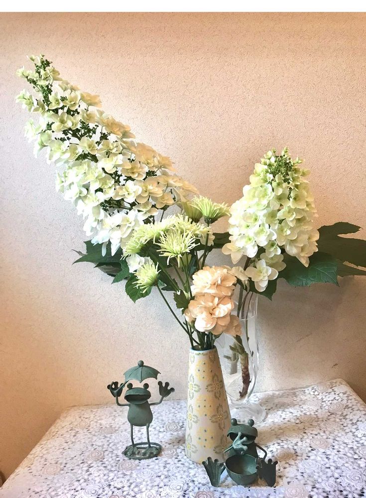 カエル🐸ちゃんとアジサイのお花は合いますねー(o^^o)