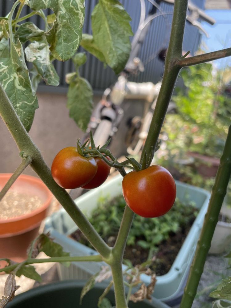 ひとつだけ小さな実をつけていたけど、どんどん大きくなって実も増えて赤くなった🍅花芽もいっぱい付けてまだまだ成長しています。