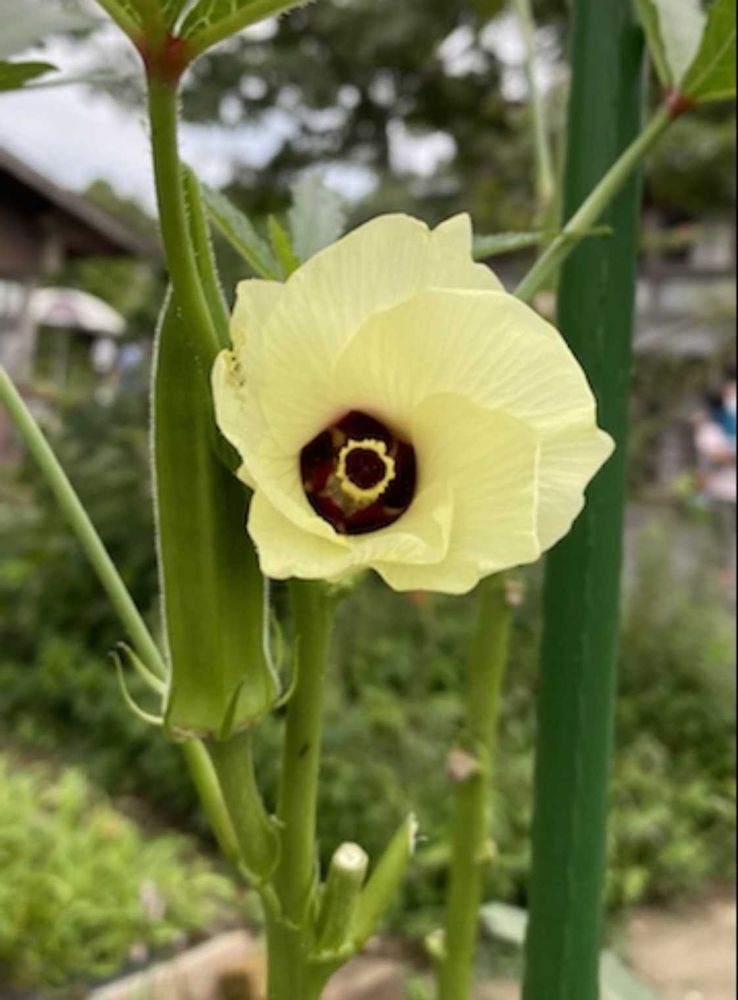 初めてオクラの実を見た時は、え?上を向いてる⁇と、驚きました😆