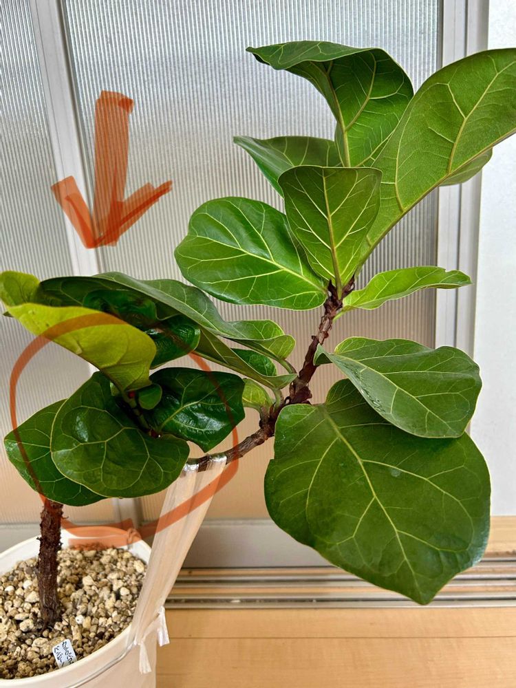 昨年(?)矢印してる辺りの葉っぱが枯れ落ちたところは今年の春から葉っぱがまた出てきて、現在ここから枝分かれしてきています。