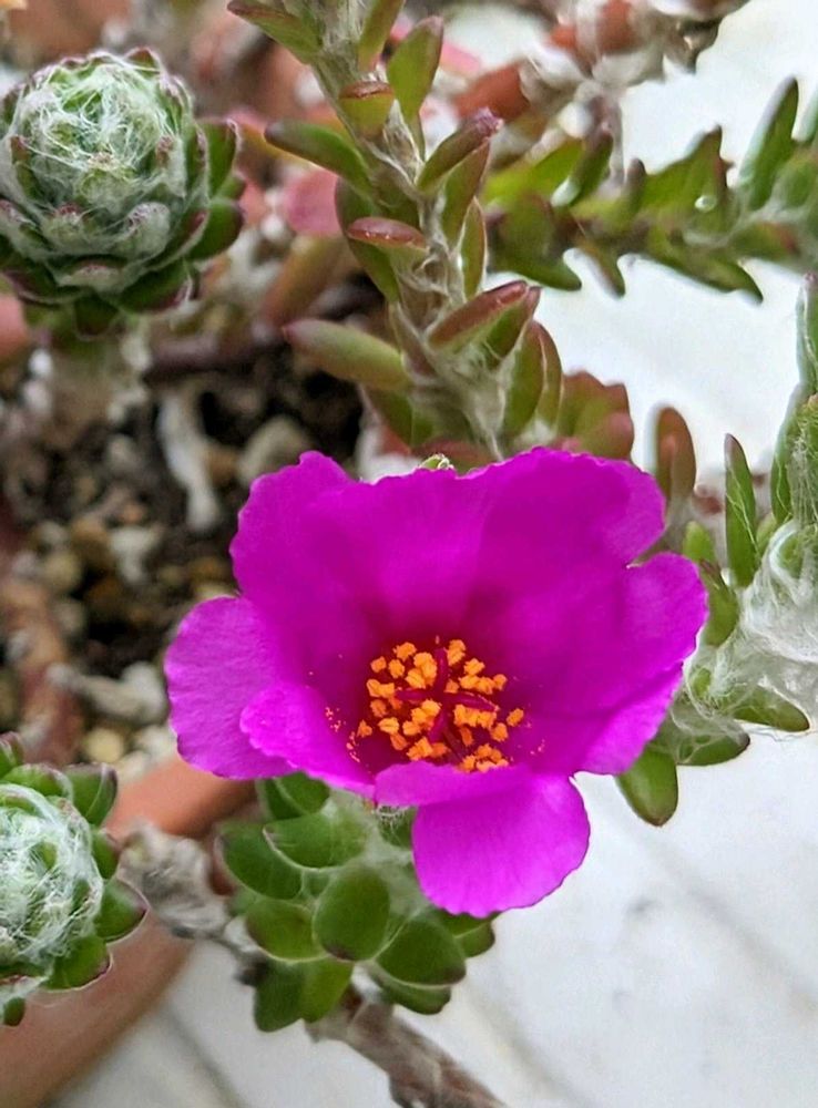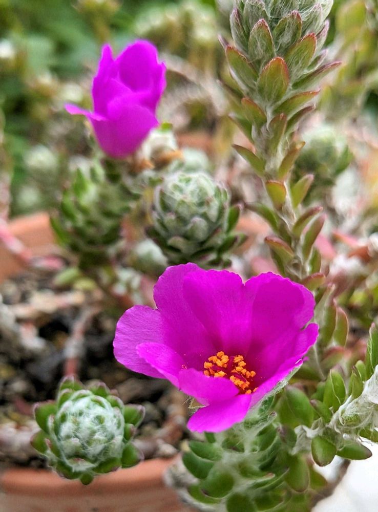 ポーチュラカ~モフモフの葉っぱで可愛いですよね…我が家でも思い出したように、日中ポコポコと咲いてくれています‥🩷💚