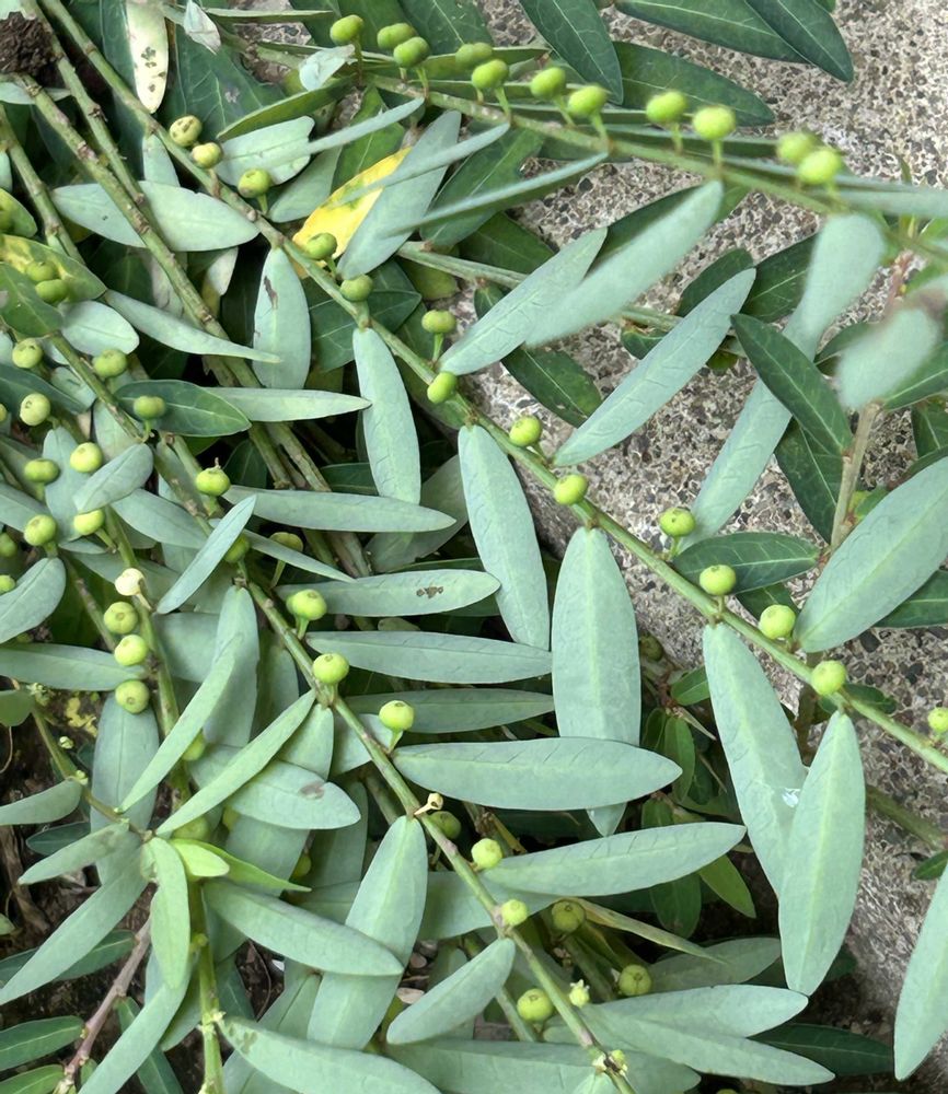 軒下に零れ種からでてきたヒメコミカンソウが、元気に育ち茎の裏側に可愛い実をつけている💓
