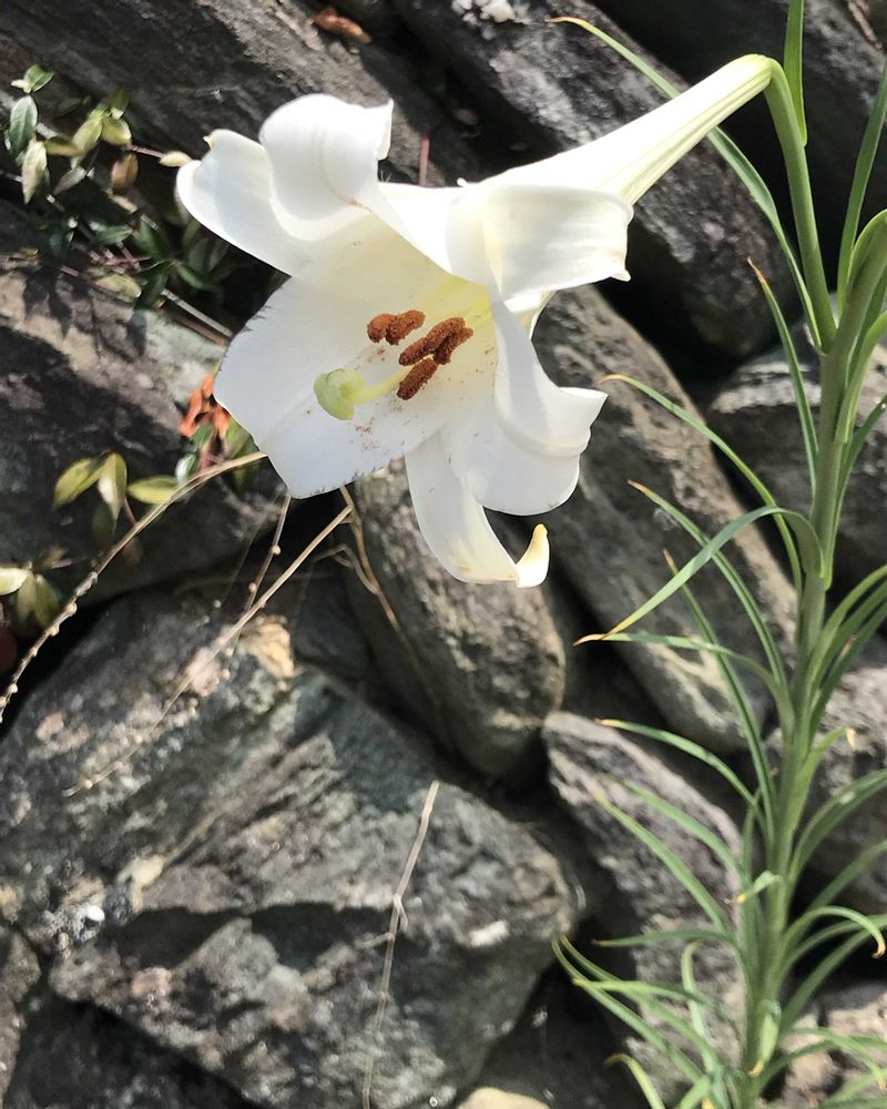 ③ど根性ユリ。散歩道の石垣から生えています🪨