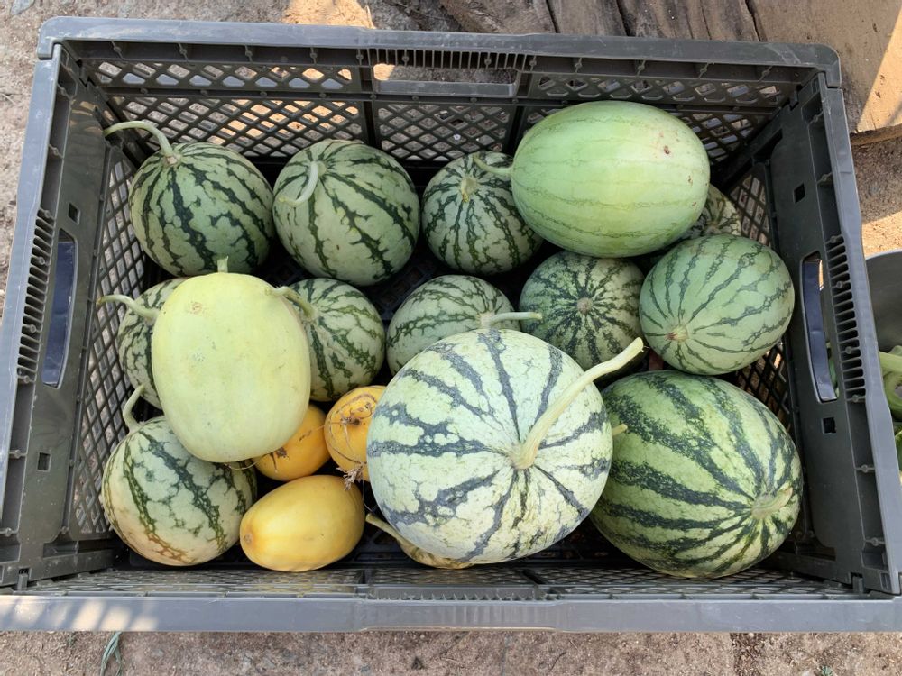 今日の私のグリーンガーデン収穫物です。たくさんすいかの苗を植えたのでこの夏はすいかざんまいです😋
