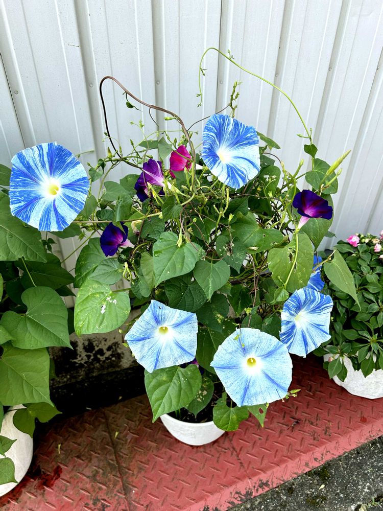 めちゃくちゃ涼しげな、朝顔さん🩵💙🤍