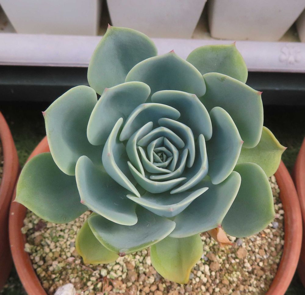 ほとんど水を切っているため,どんどんスリムになっていく七福神。株分けした七福神の鉢が複数あるけど,みんなこんな感じで葉が細くなっている。