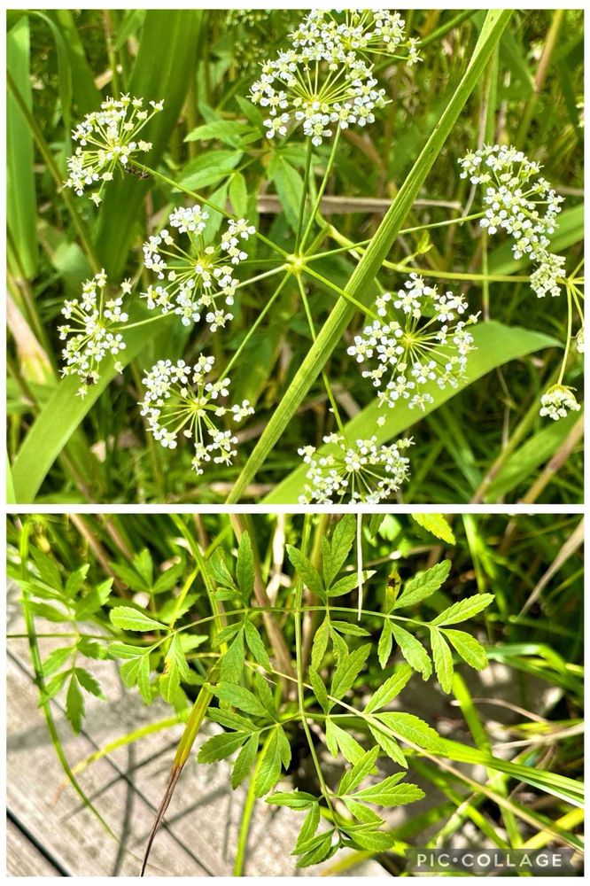 アシ(ヨシ)の中で、花を咲かせているこれは、ドクゼリですね😊 全草猛毒です。