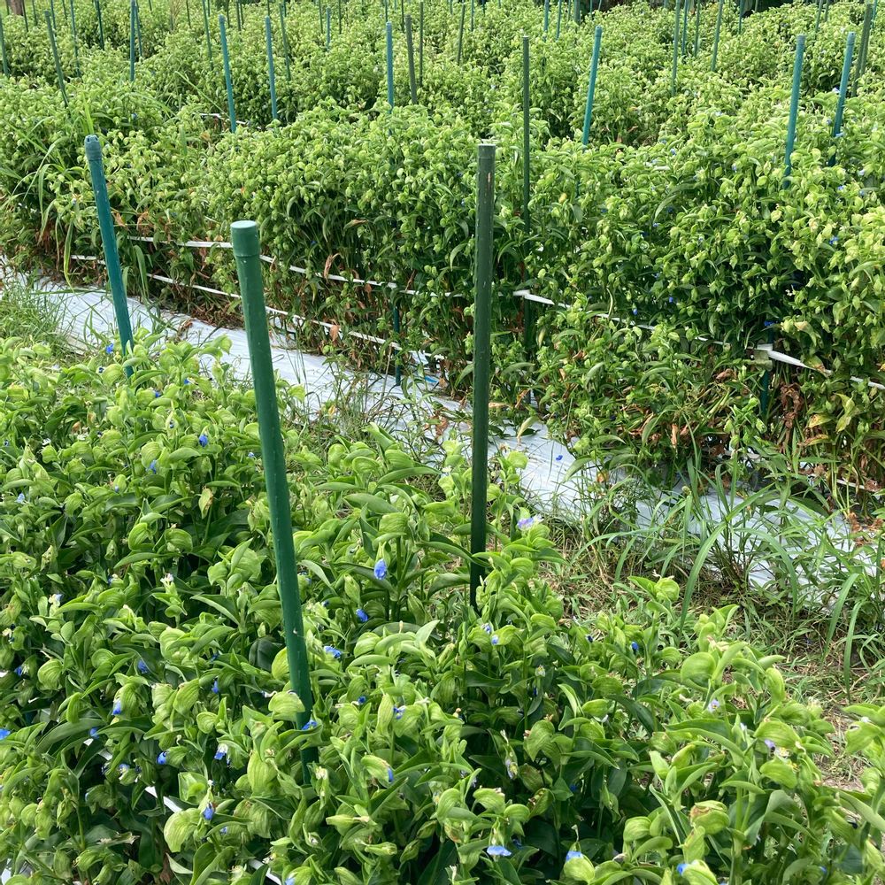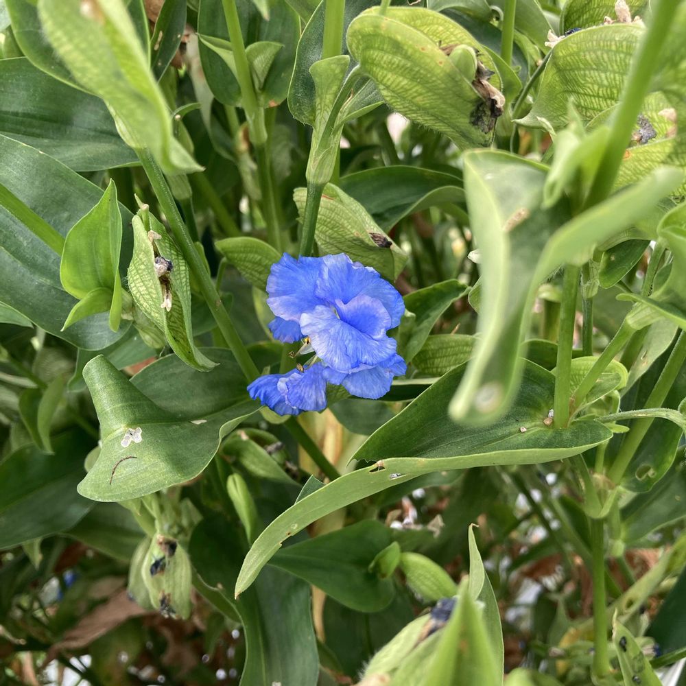 草津のお花のアオバナです。大帽子花(オオボウシバナ)といい、つゆくさの変種です。染料として江戸時代から草津市で栽培されてきました。夏の日差しの下、昼までに摘み取らないと萎れることから、作業の大変さから地獄花とも呼ばれていたそうです。
