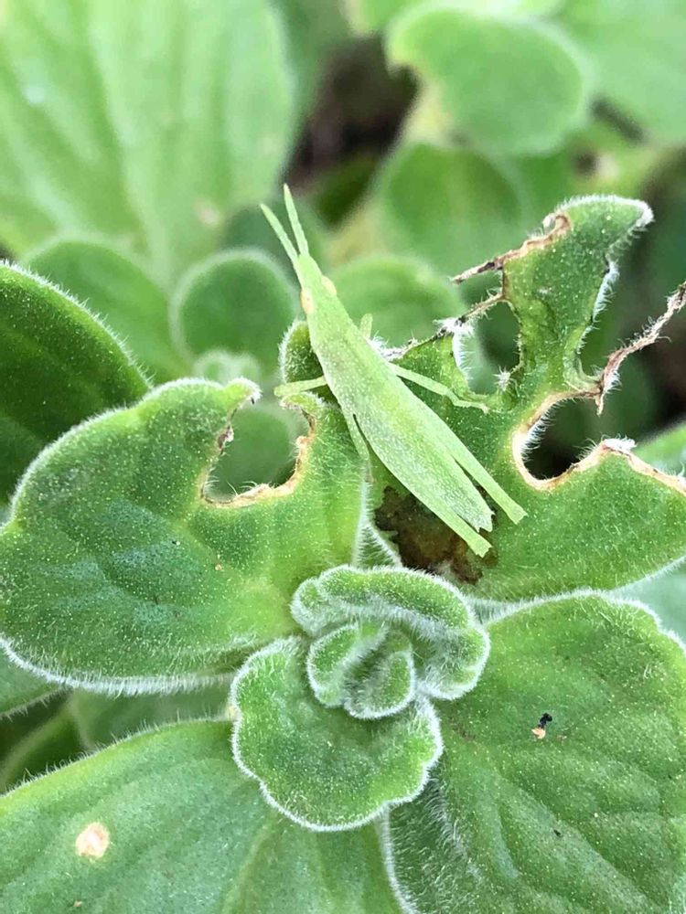 ショウリョウバッタはアロマティカスまで食べるんですね😣我が家ではミント🌱も食べるんですよねぇ💦