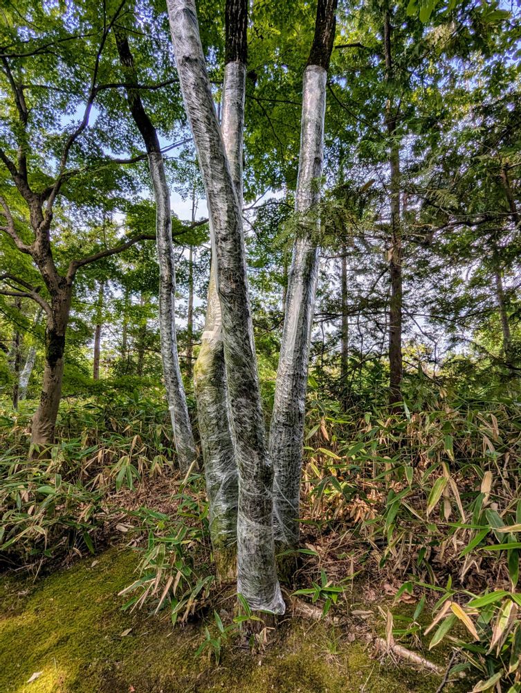 1・2 キクイムシによるナラ枯れ予防のためラッピングされて