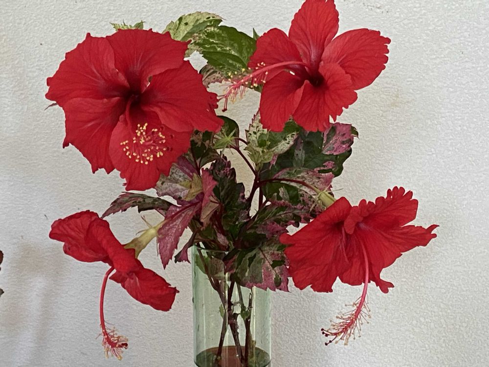 斑入りハイビスカスが沢山咲いたので飾ってみました♪🌺