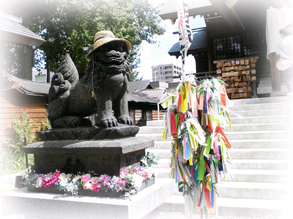 ⑤狛犬さんもお帽子かぶって熱中症予防🤗