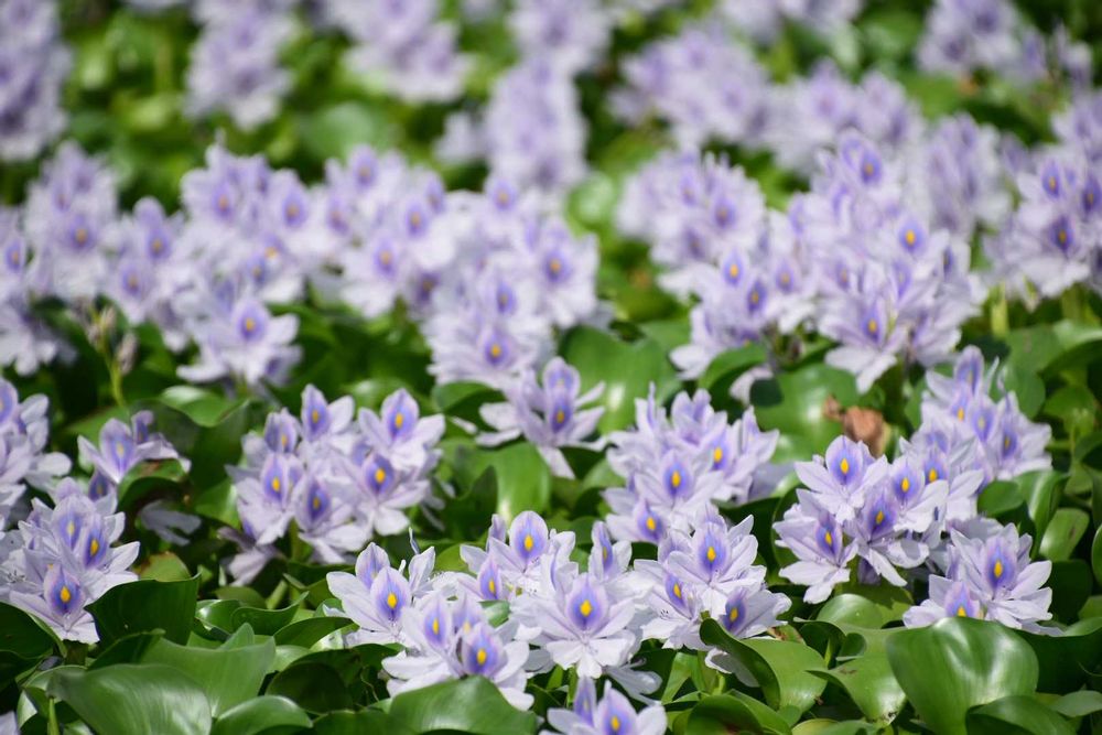 暑さ忘れるホテイアオイの爽やかな色のお花畑。