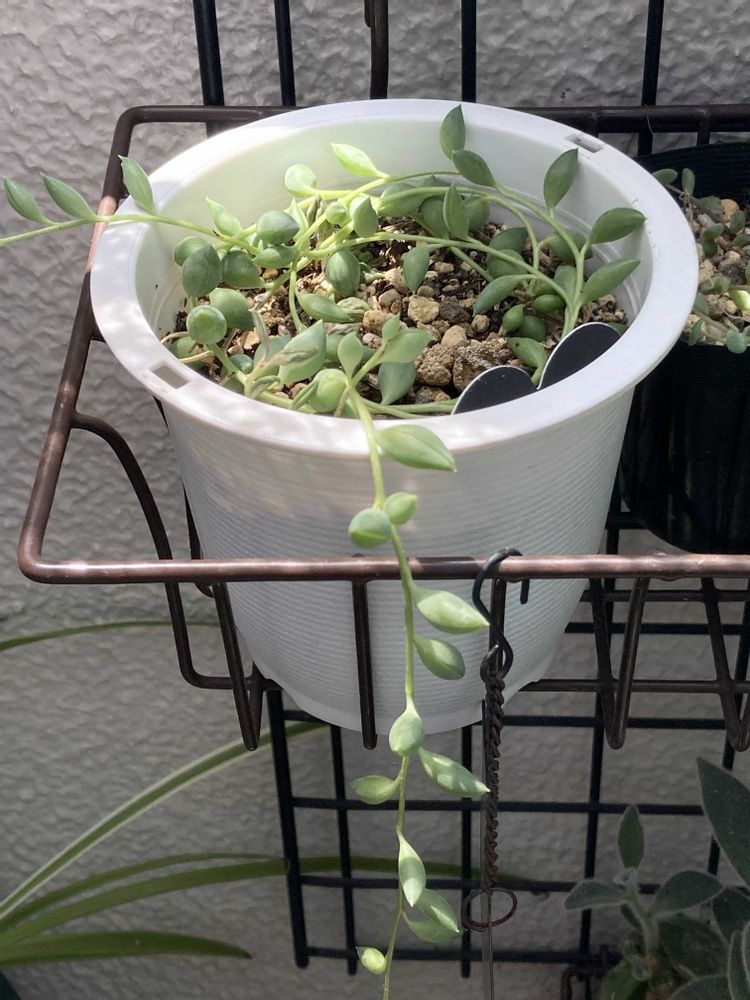 pic2 2年前に弱って葉が2枚(2粒)だけになった所から、チョロ水を根気よく続けて復活したグリーンネックレスさんです✨