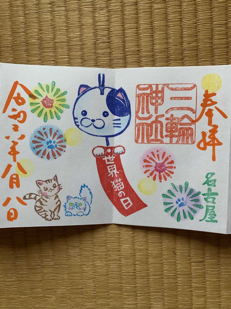 「世界猫の日」でしたのでその御朱印と、大黒様の御朱印、三輪のうさぎさんの誕生日の御朱印を頂いて来ました。