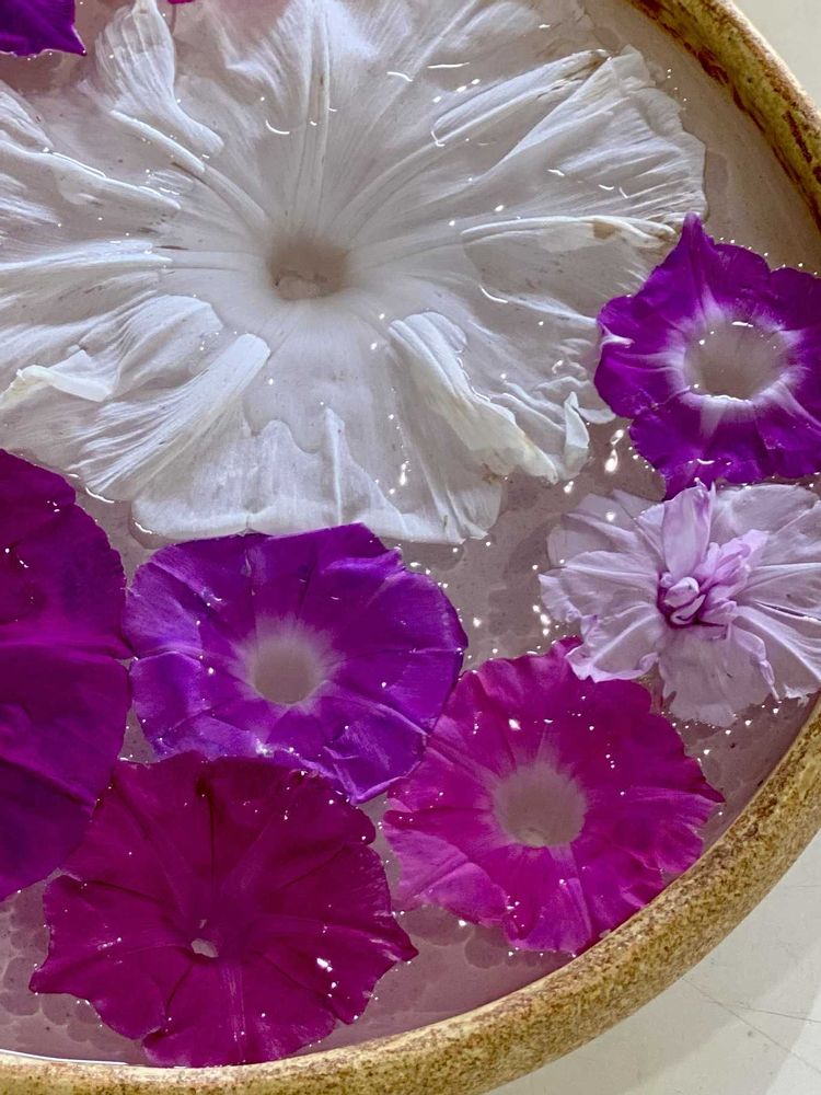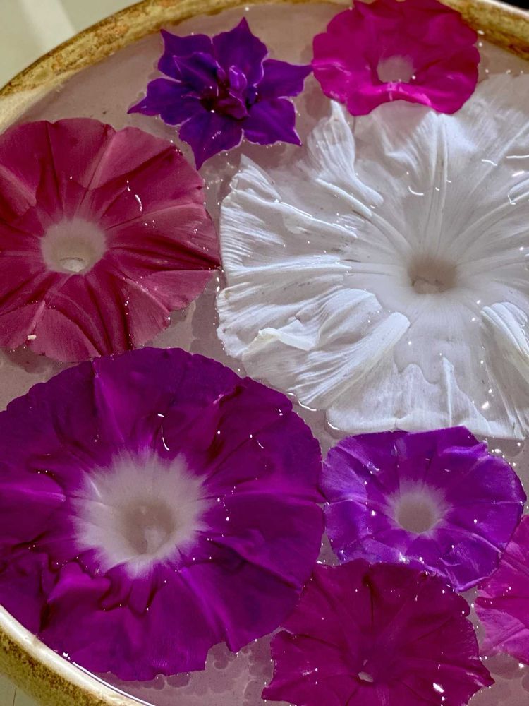 大きなお皿に朝顔が浮かばせてありました🙏💕