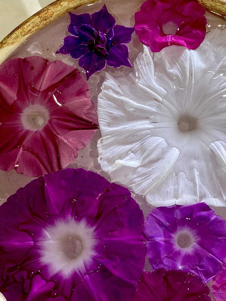 大きなお皿に浮かばせた朝顔!ですね🫣💦
