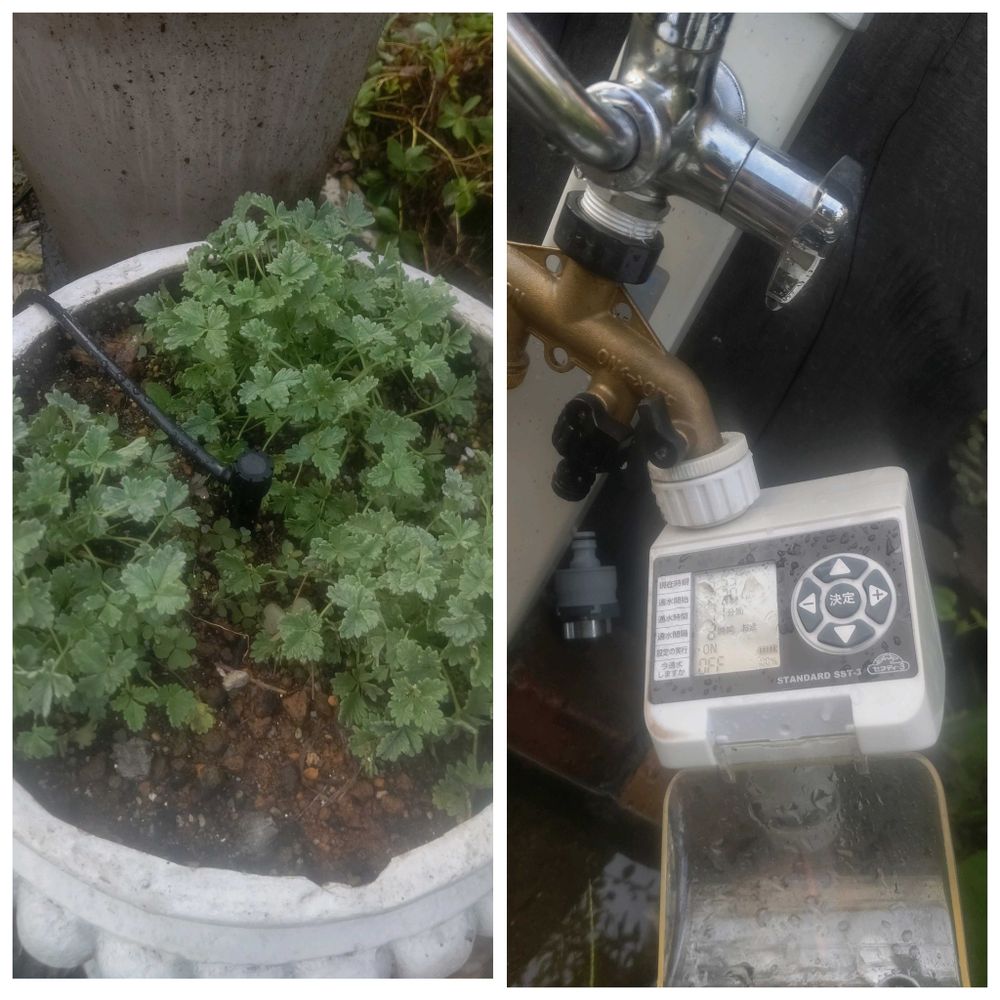 鉢の水やりは自動でできる機材があるので大変ありがたいです‥水の使いすぎで漏水の疑い有りと警告がありましたが💦