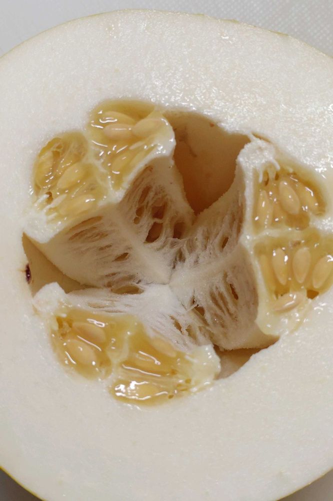 熟すとメロンのような甘い香りがしてきて、ヘタの周りにヒビが入ったら食べ頃のサインらしい。