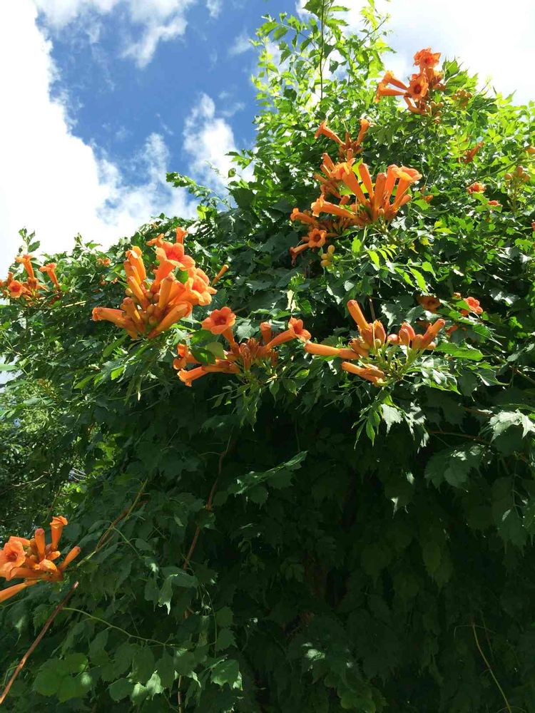 毎日暑いですね😵子供達が公園に行きたいと言うので来てみたら、とても大きなノウゼンカズラの木が沢山ありました。お花はしぼんでしまってますが😅熱中症気をつけます!