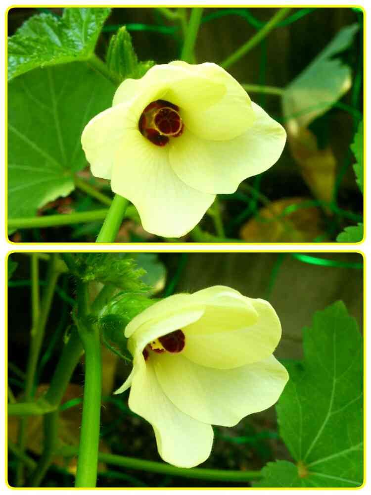 オクラのお花がこんなに可愛いとは知りませんでした~🌼
