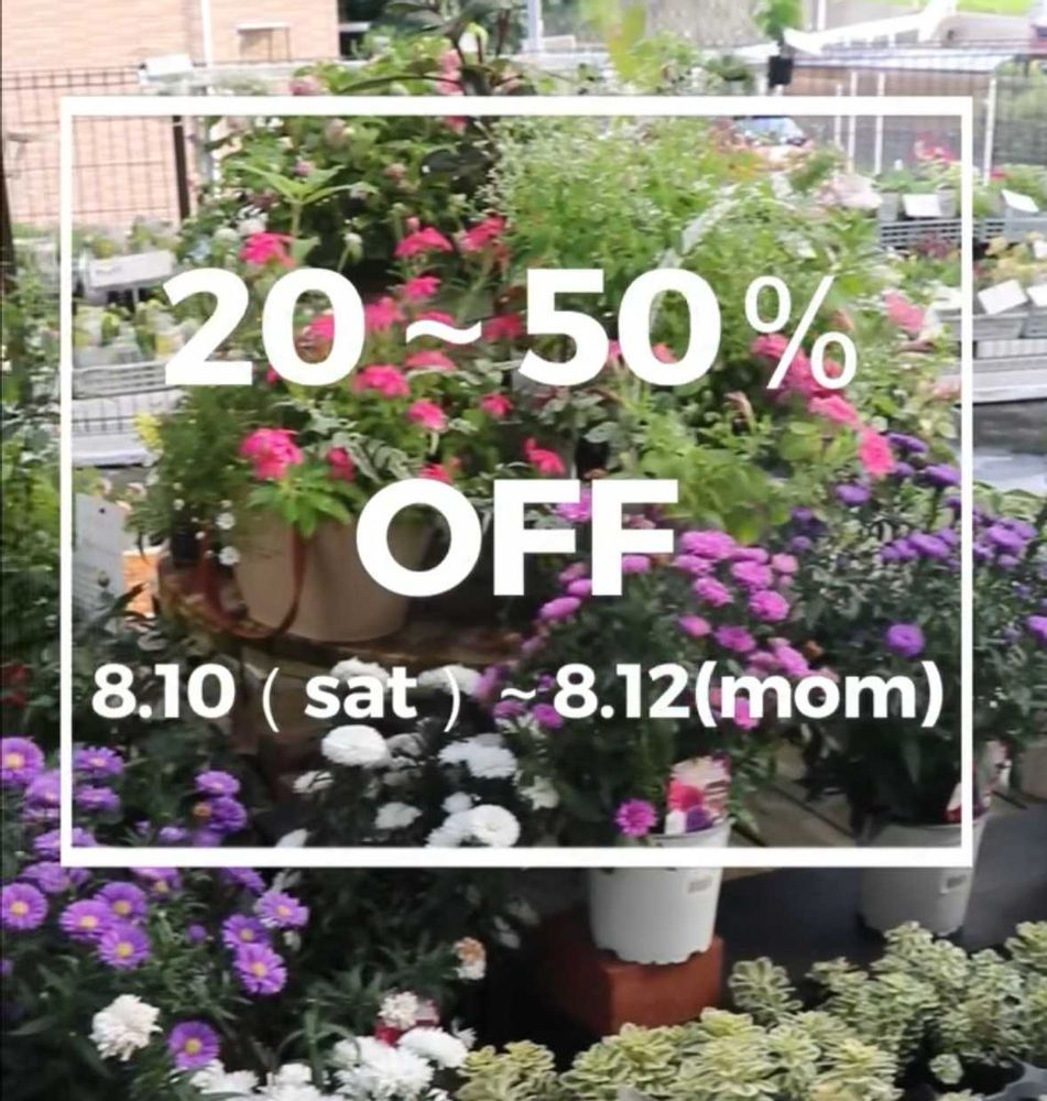 〇外売り場の植物(花苗・果樹・花木・寄せ植え・ハーブ苗)などは、全品半額