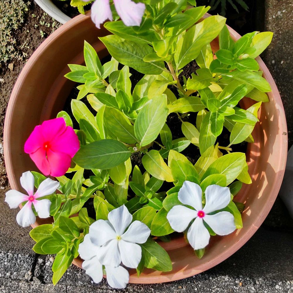 鉢植えのニチニチソウです。