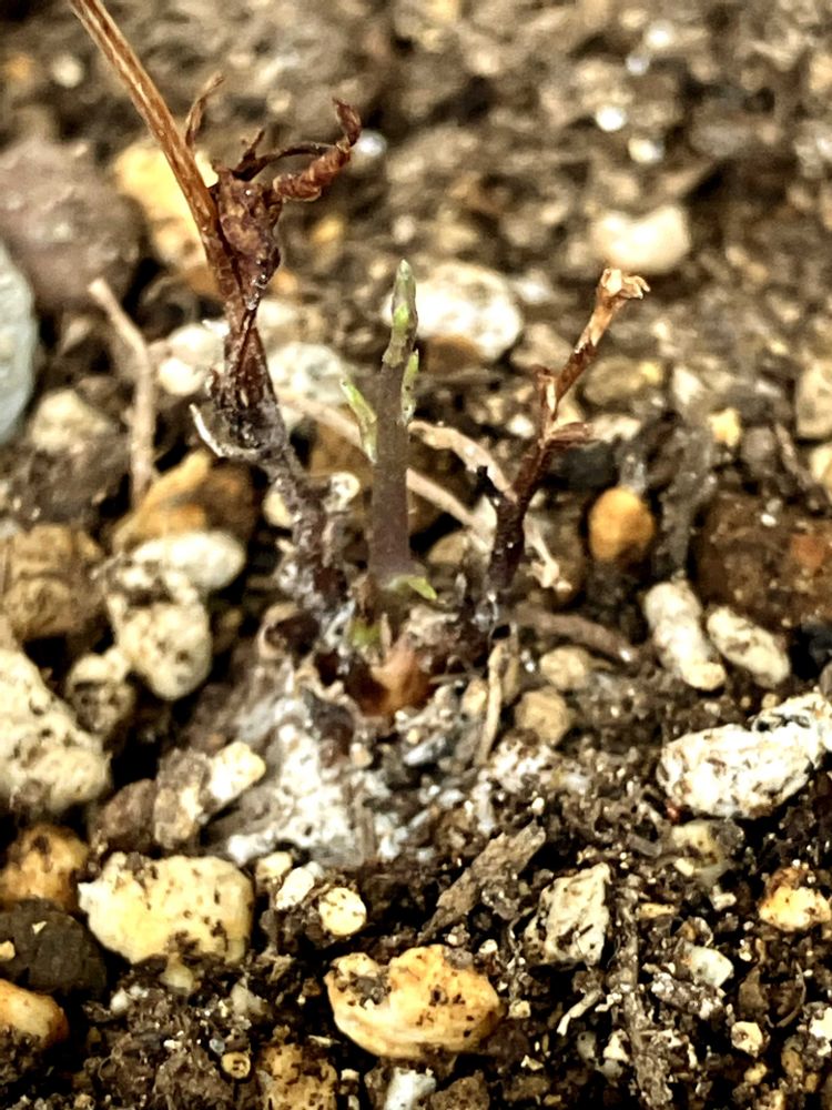 休眠期だった亀甲竜さんから新芽っぽいのが出てきました。