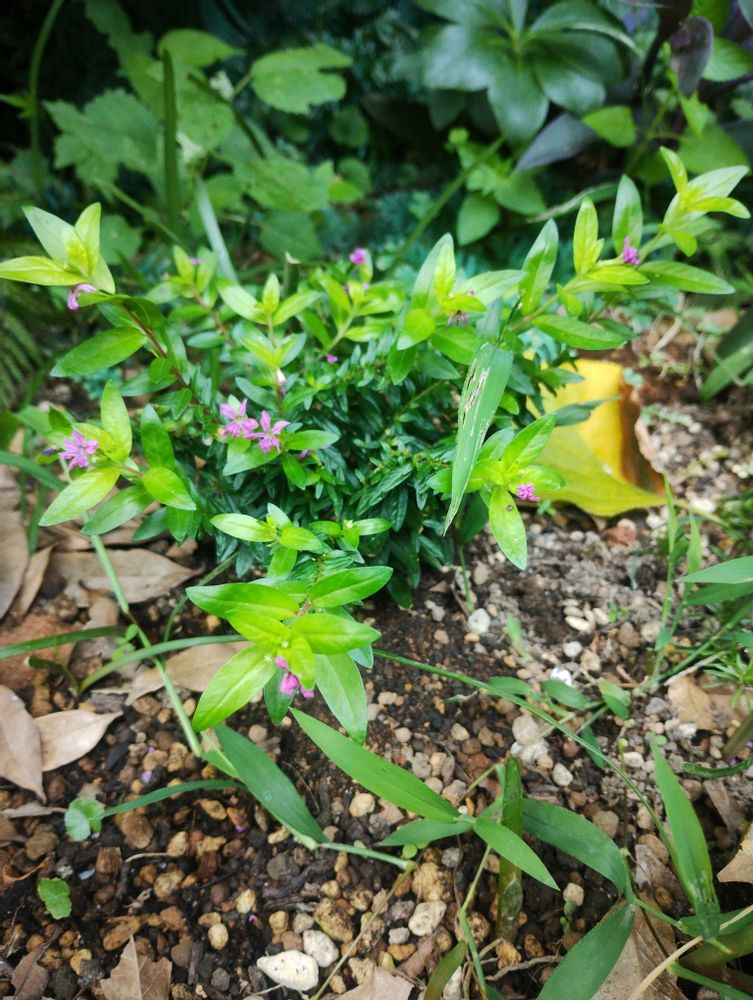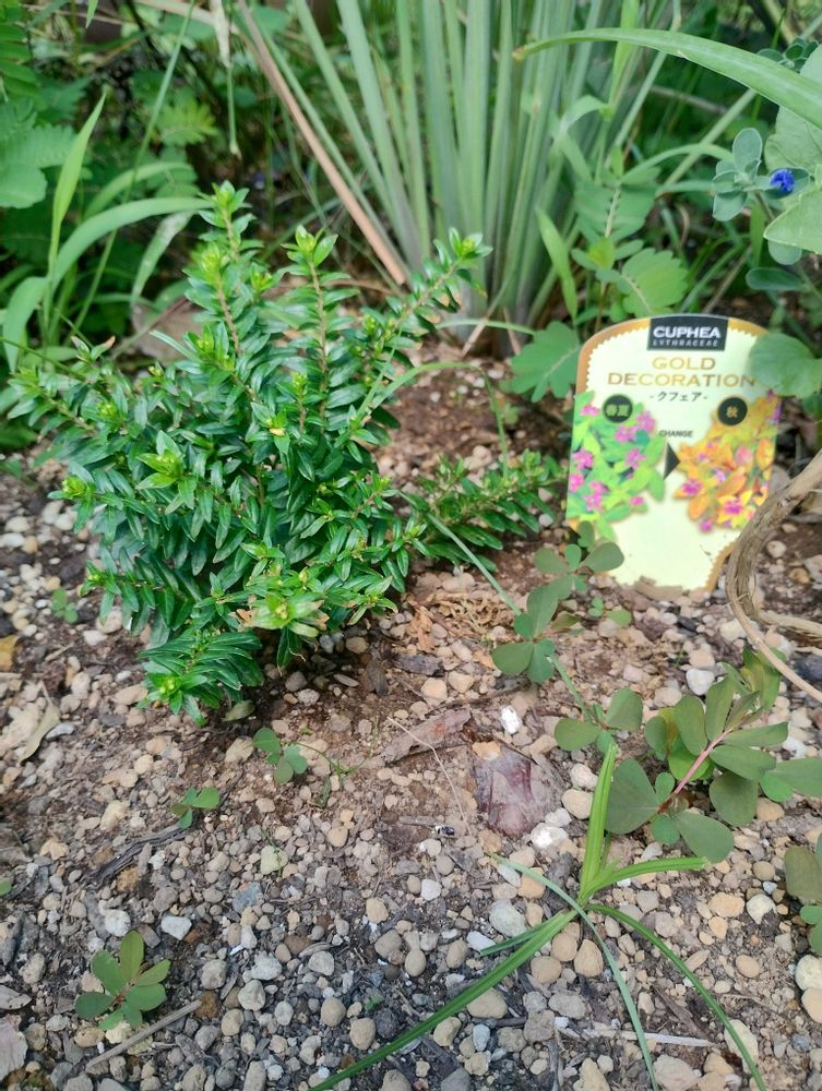 午前中に日が当たり、午後には日陰になる場所に植えたクフェアの方が、よく育っています😊新しい葉も出てきて、花も咲いて。
