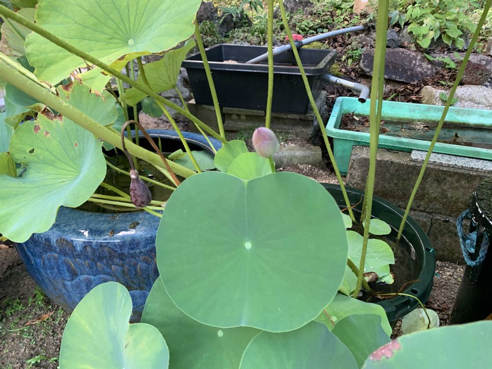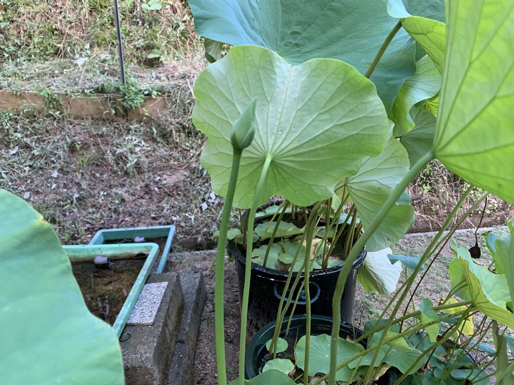 蓮🪷の一天四海が今にも産まれそうです😀茶碗蓮の小舞妃はまだ蕾みが小さいです😅ふと後ろの大賀蓮を見たら、蕾みが上がってました😆2022の8月にメルカリで買った種で、すぐに発芽したものの、30Lのと小さな漬け物樽に植えたもののほうからの花芽です😀蘭でもよくあることなのですが、鉢の中で根っこが充実しないと咲かないパターンかなぁ❓😅種から2年で咲きますか❓😀