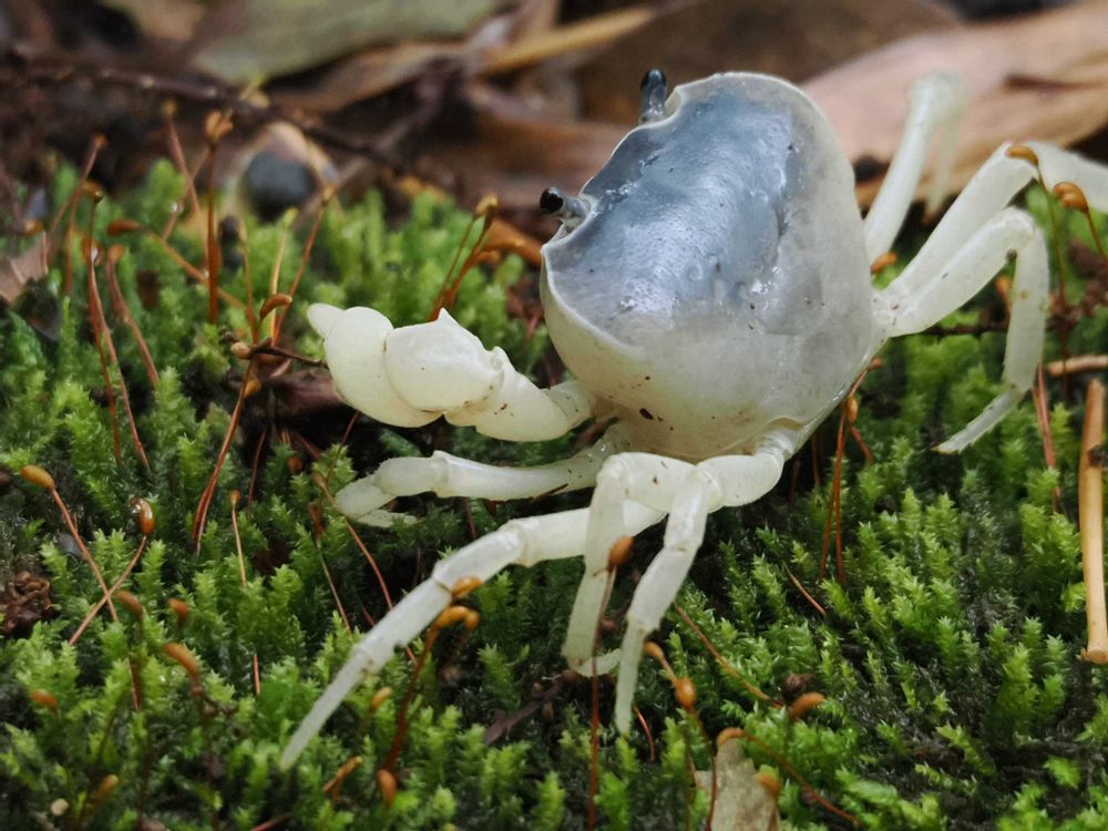 こちらの山のサワガニ?は小さい時は白く、大きくなると甲羅がブルーグレーな色をよく見かけます🦀🤍🩶💙