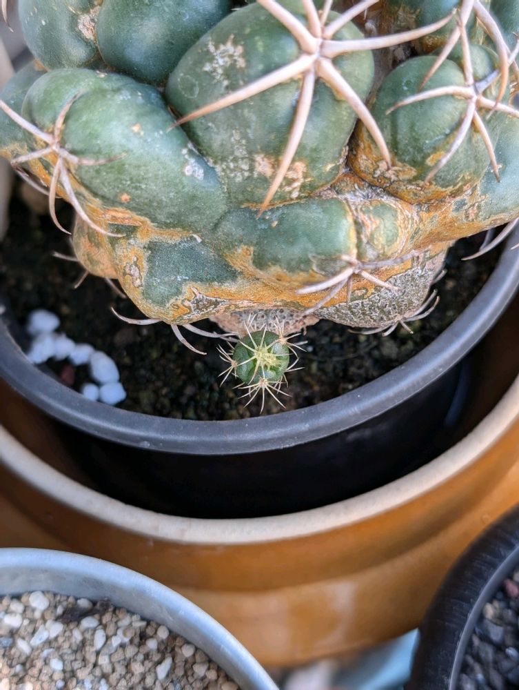 4枚目は百均の子、たぶんカクタス◯田産。この子は株元から子株沢山…なのか、種が沢山蒔いてあったのか??