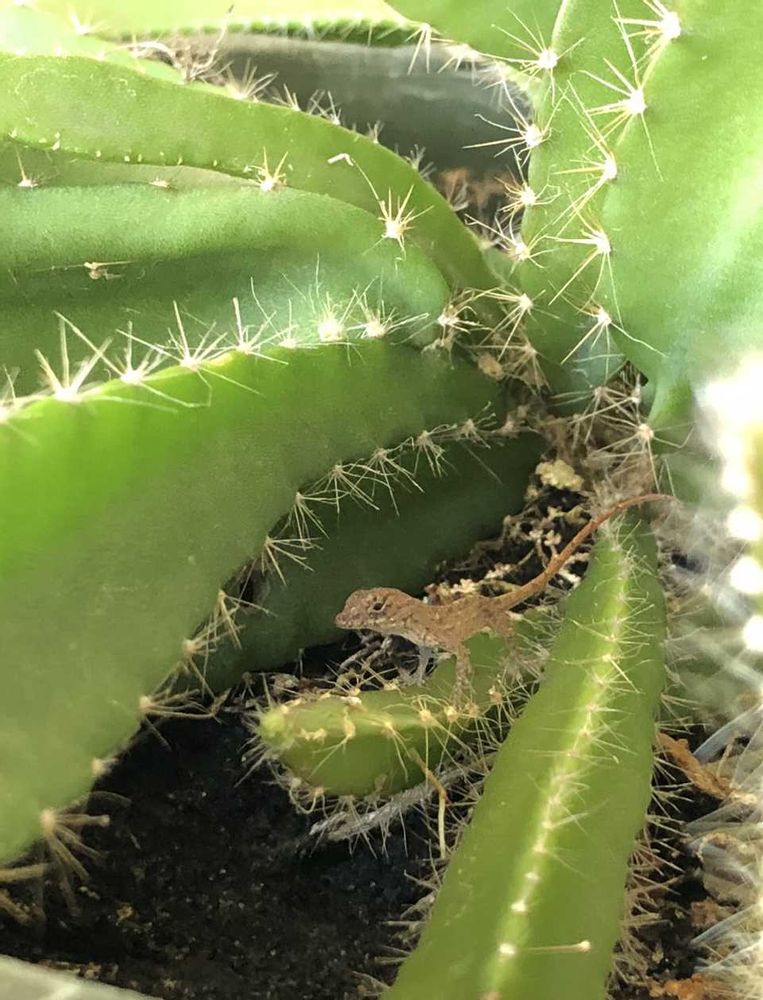 🌵さんのトゲに守られてトカゲ🦎さんのお気に入りの場所なのですね