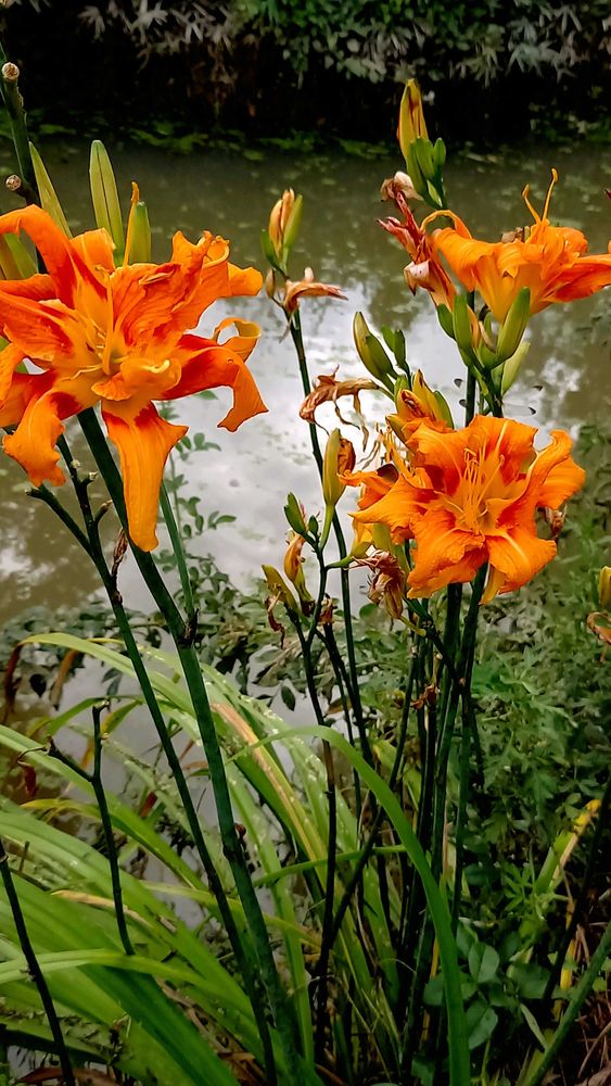 暑くてもとっても元気に咲いてました、一際👀を引く🟠色のヤブカンゾウ