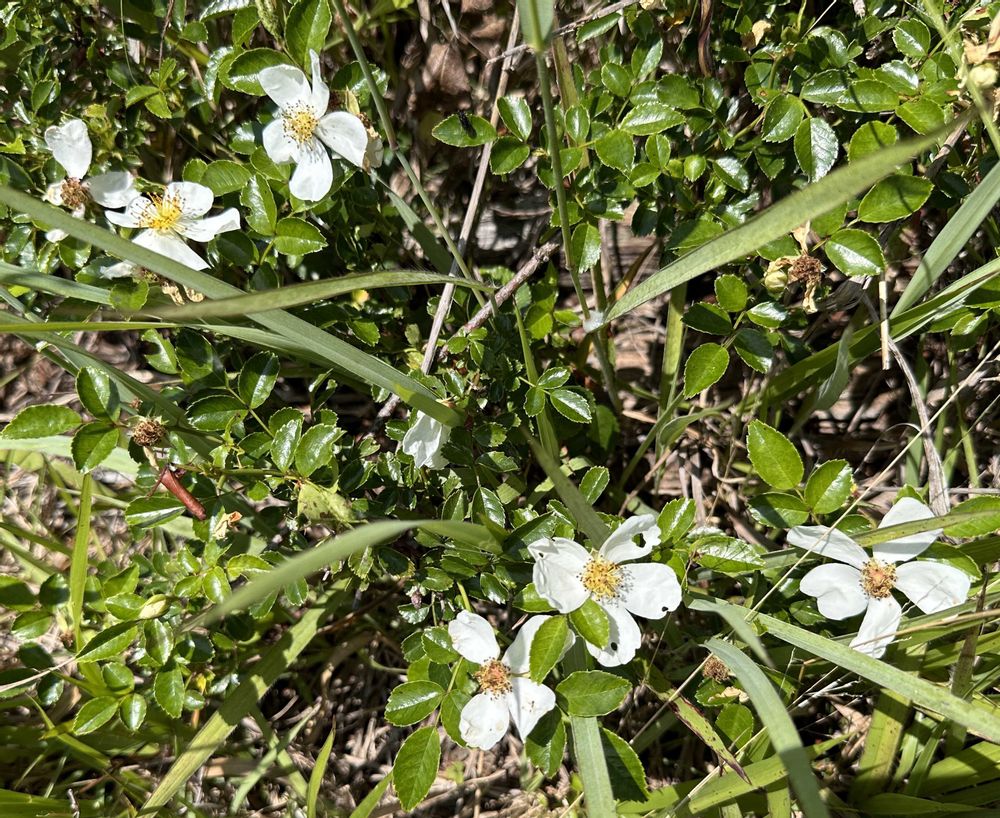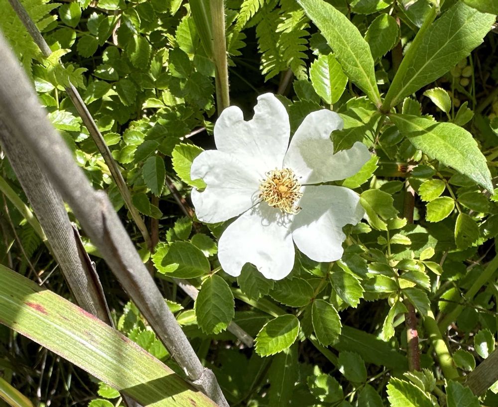 テリハノイバラです。ノイバラの花はかたまるんだけど、テリハノイバラの花は一つずつ付いて、花の大きさが全然違って艶やかです😍