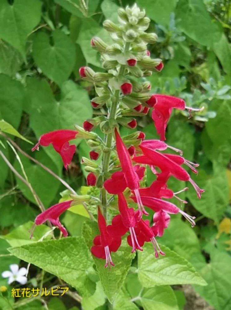 私は この春 もらったサルビアの種を撒いて 5本くらい育ってきたけど 花は未だ咲いてないわ☺️ いつ頃 花が見られるか?