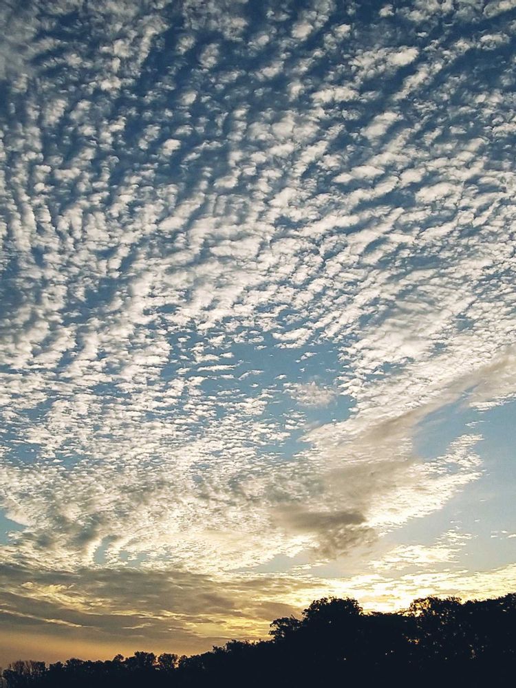 部屋から朝焼けに雲の空を見て外に行って見たくなり、そしたらのうろこ雲なので、部屋から見えたのとは違う空模様です😄
