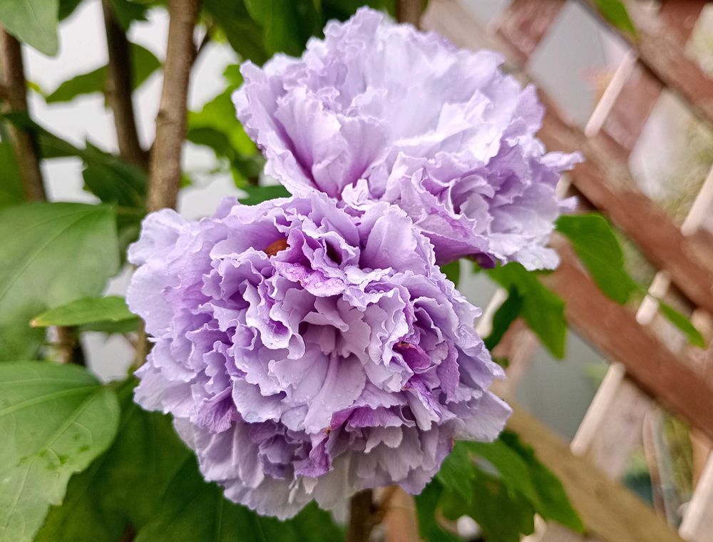 ✤木槿が幹下の方で2輪くっついて開花💜💜💕