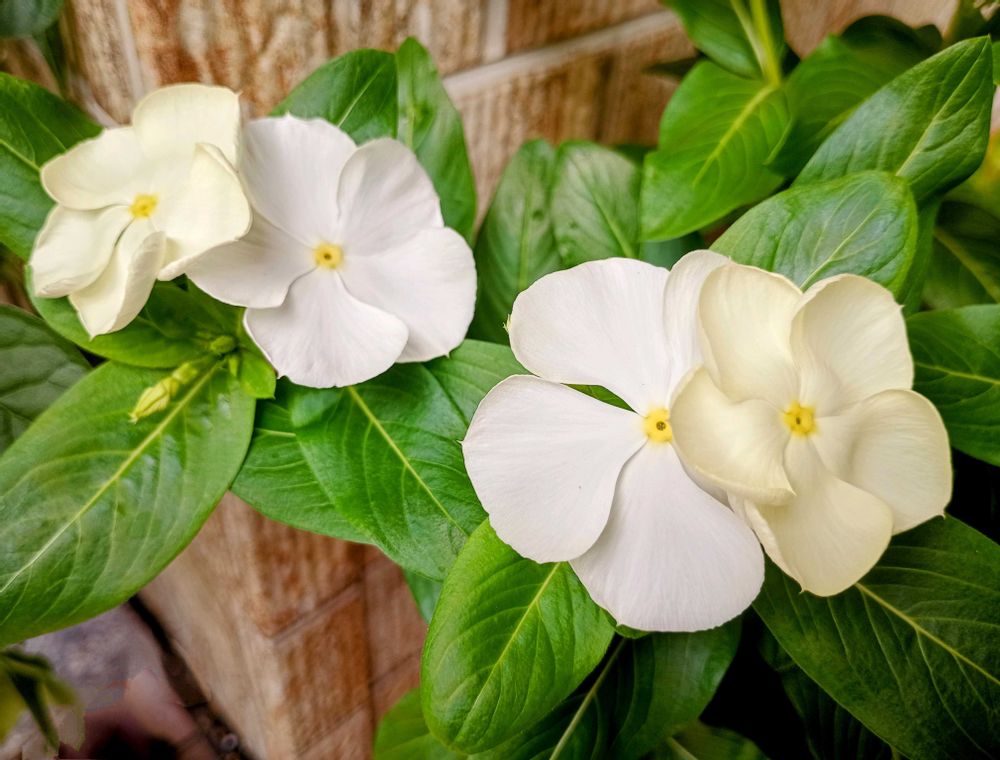 ✤ニチニチソウ「ゆずあいす」💛🤍🌿もたくさん咲きだしました。ほっこり癒され🍀🤲💖