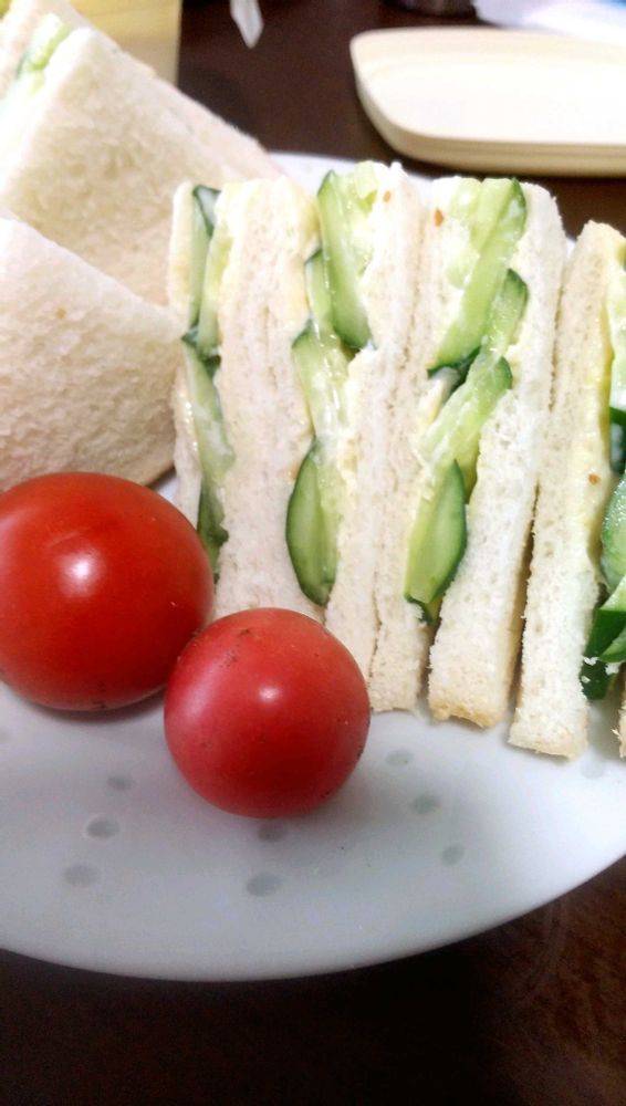 朝ごはんは採れたてキュウリサンド