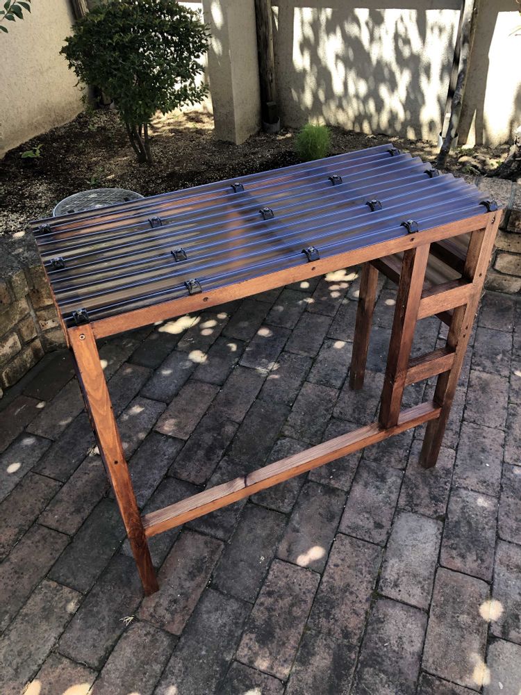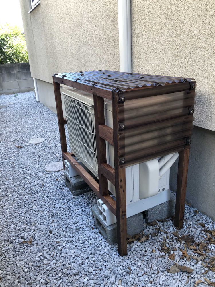 連絡を利用して室外機のカバーを作成…あとは重石でコリウスを乗せる予定