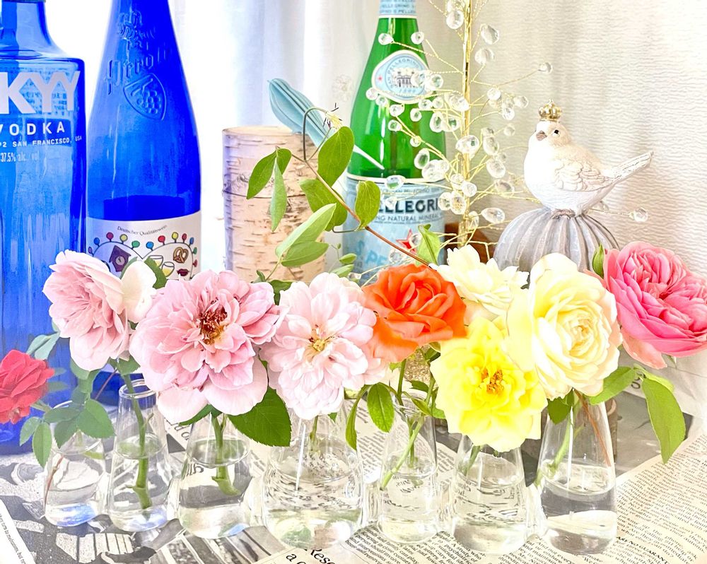一輪ずつ 飾ってみました。