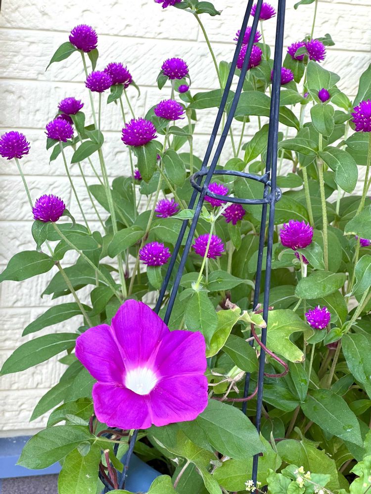 ②おんなじ色の朝顔と千日紅💜