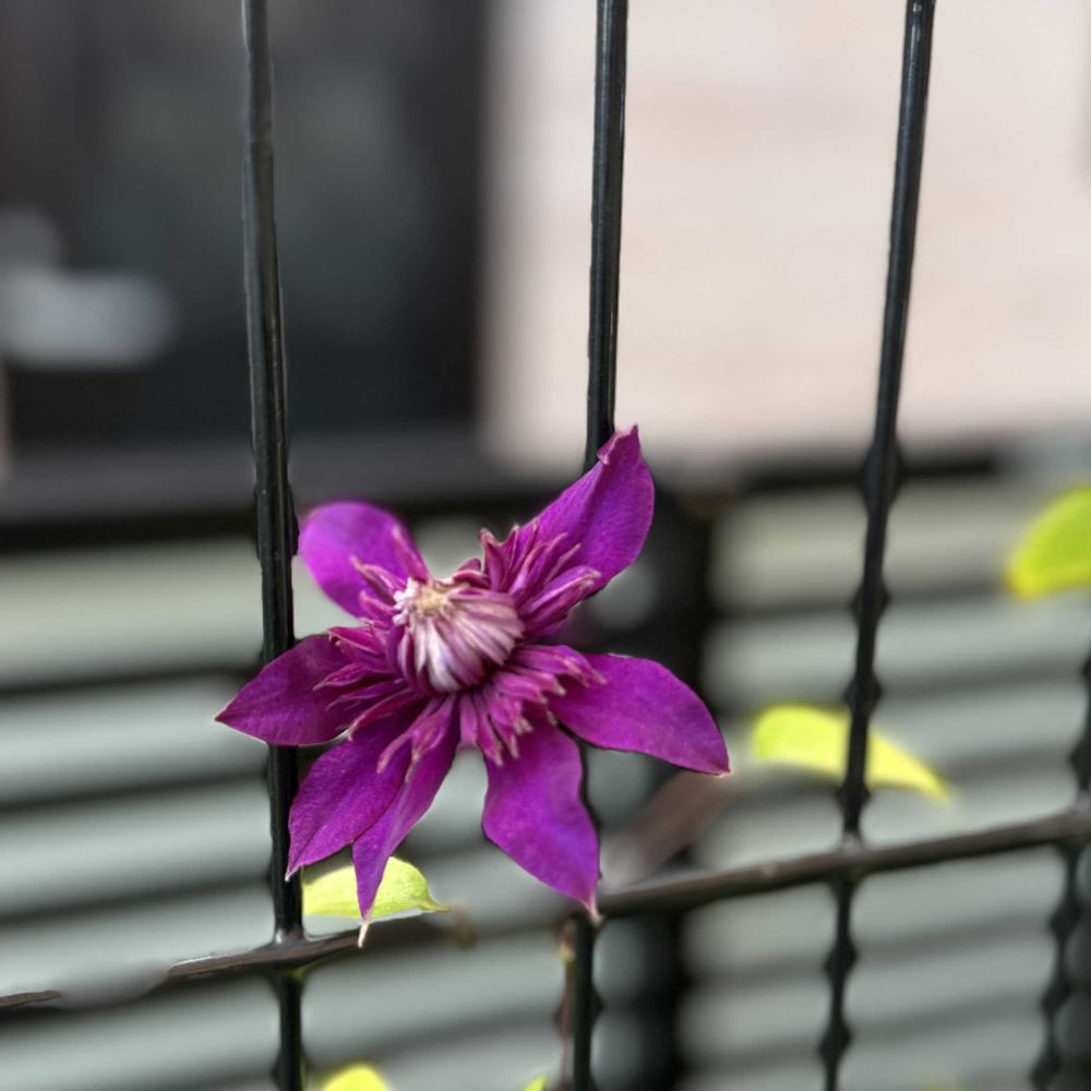 紫のクレマチスは気まぐれのように一つ返り咲きw
