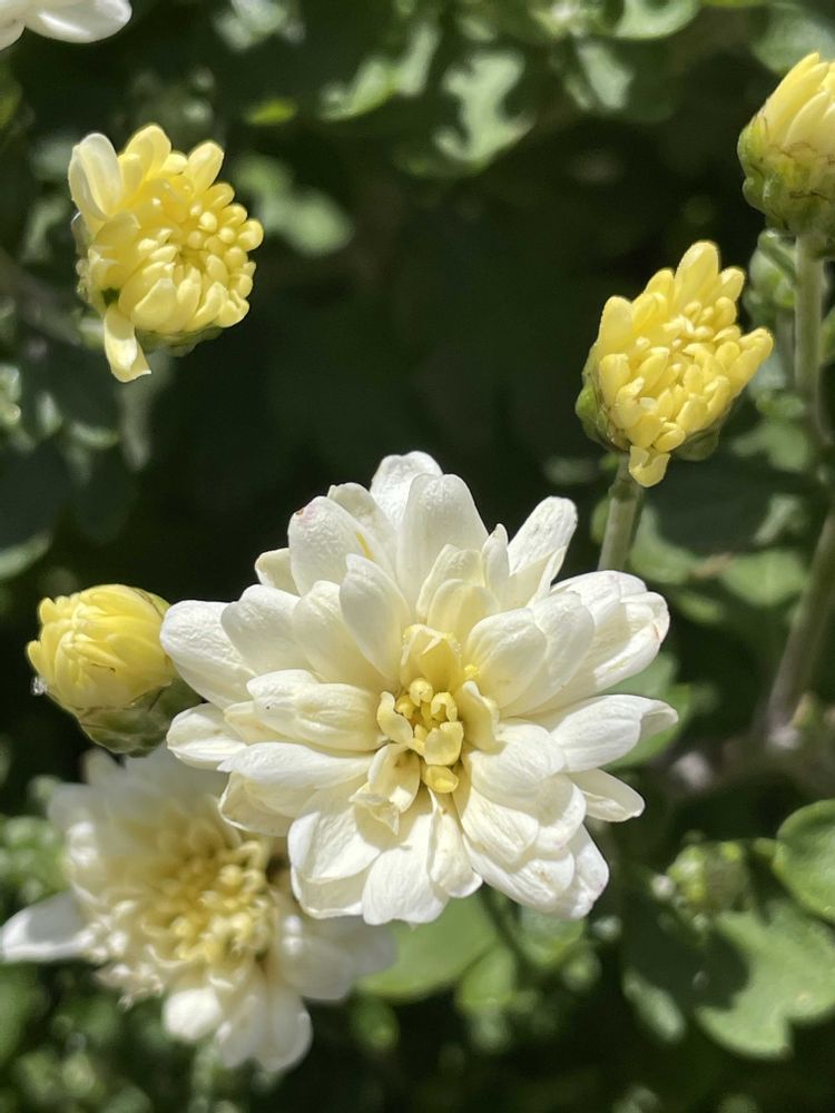 パールホワイトの夏菊上品で素敵ですね🥰買ったときのお色と違いすぎてびっくりですが七変化してくれるのかもしれません🙆これはホワイト好きのこむこむさんには掘り出し物だったかもしれません🤗