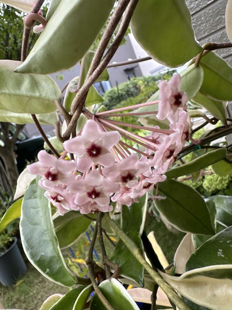 玄関前の行燈仕立ての大鉢に、我が家のホヤカルノーサも咲きました😆
