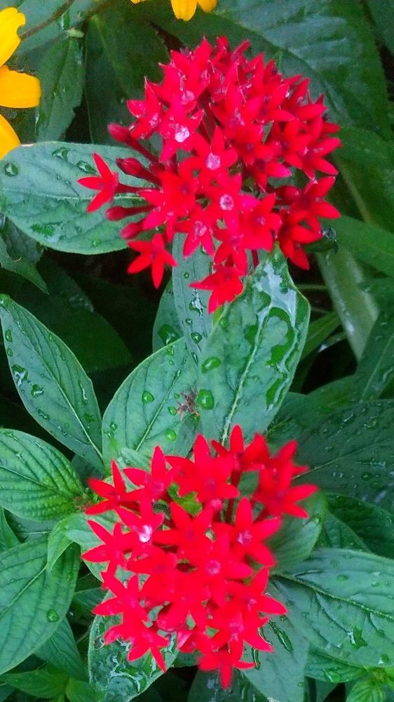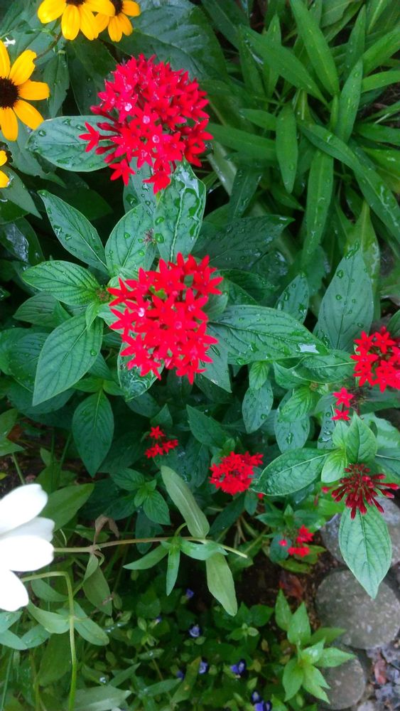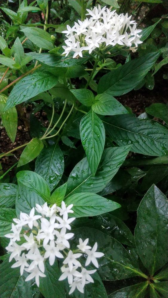 ペンタスの高く咲くお花、白、赤、元気に咲いています。🤍❤️